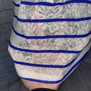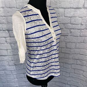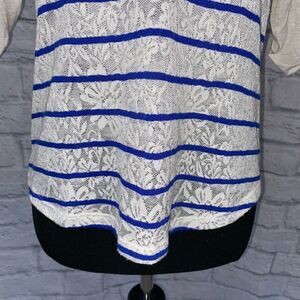 BCX women XS semi sheer 3/4 sleeve top w/floral and stripe print