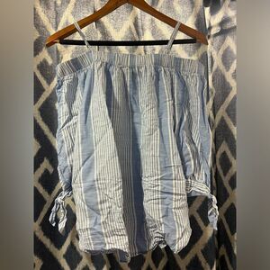 BCX Blue and White Off the Shoulder Striped Boho Blouse Size L EUC