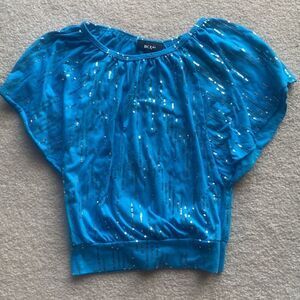Cute turquoise top with butterfly sleeves from BCX! Your child will feel glamorous in this silver sequined top!