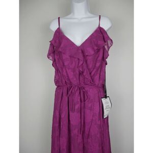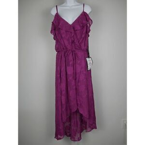 BCX beautifully opens up this ruffled, tie-waist dress with an off-the-shoulder neckline and closes it out in style with an asymmetrical hem.