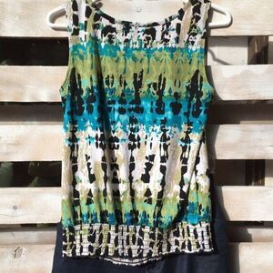 BCX sleeveless blouse. Pretty design, gatherer at waist.