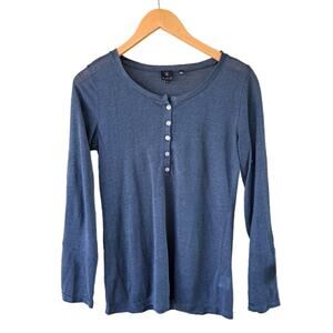 B.Chyll Linen Knit Henley Top Sweater Lightweight Small Marine Blue