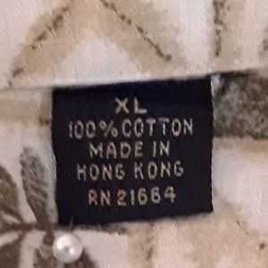 Get ready for an afternoon in paradise in this great BD Baggies Hawaiian Shirt featuring button down front pocket & short sleeves. It is fabricated in a palm tree & tropical leaf pattern in colors of ivory, tan & olive green. This shirt is in excellent condition with no holes or stains. It does have an "M" on the inside label by the previous owner's tailor to help coordinate his client's wardrobe selections (see photo).