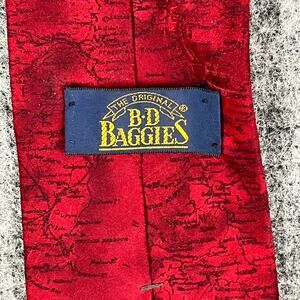 This collectible B.D. Baggies silk necktie captures the charm of classic 1990s novelty menswear. Features an intricate fish motif across a rich red base, crafted with premium silk for a luxurious feel. A standout piece for collectors or those seeking a distinctive preppy statement accessory.
