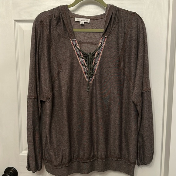 So soft and comfy. Worn once cute v neck details. With hood. Size medium