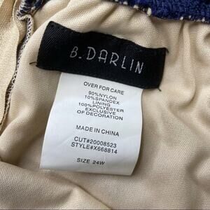 B.DARLIN Nude Tulle Formal Dress Sapphire Blue Lace Overlay Fringe Hem.