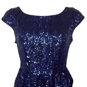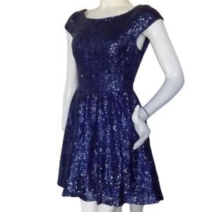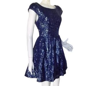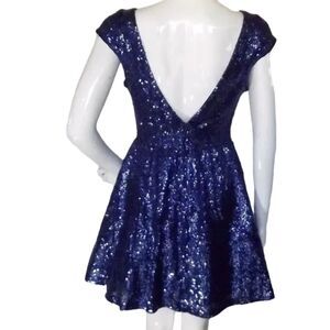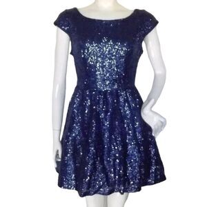 B.DARLIN Sequin Skater Dress, 11/12, Blue, Mini/Short, Cap Sleeves, Open back