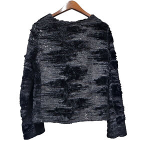 BDB Buffalo David Bitton Womens Medium Black Faux Fur Sequin Jacket Collarless