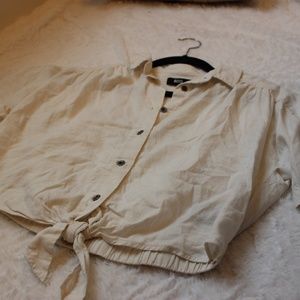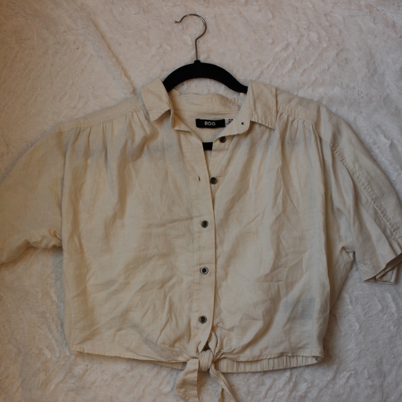 Urban Outfitter/BDG cream colored, button up/collared top, tie front, elastic waist in back, size small, perfect condition