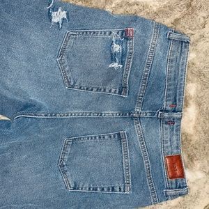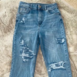 Distressed denim jeans