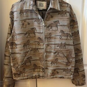 BDG jacket with abstract design. Features earthy tones.Super cute