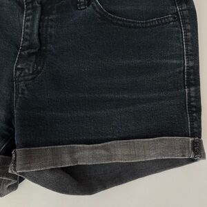Size 27. Very good condition - perhaps some light overall fading. Not sure if the wash was designed to be somewhat faded (comparing to stock photo - perhaps a different “wash”?) Shorts are clean, steamed & ready to wear! 5 pocket, zip front, rolled cuff style. Light whiskering. 99% Cotton 1% Spandex. Color is a light black/very dark blue? Approximate measurements (taken when laying flat - cannot guarantee fit):
