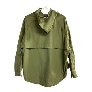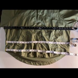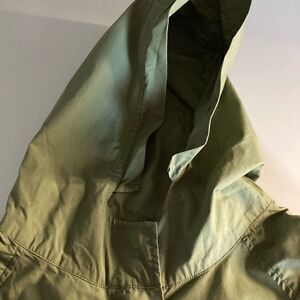 BDG , Army GreenWomen’s Oversized Hooded Jacket,Size SP,Zipper & Snap Closure. Two Pockets in front. 100% cotton, hand wash. P/P 26”. Sleeves have snap Closure. Back is longer than front. Great with leggings, jeans &boots.Hippy, retro. Please see approximate measurements in pictures before purchasing. Use your own judgment as to the fit. Send me an offer. I will either accept or counter!