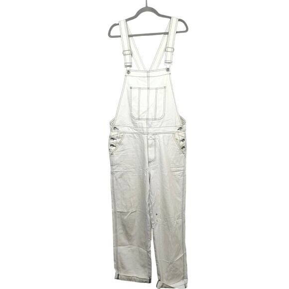 BDG Baggy Overalls Womens 32 White Straight Leg Denim Preppy Boho Utility