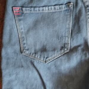 The shorts listed & photographed are indeed a faded washed out BLACK..the lighting in my home makes them look blue- but they are definitely BLACK washed..Soft denim. My apologies for the hue in photos.