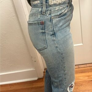 BDG Blue Straight Leg Distressed Jeans with Raw Hem