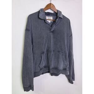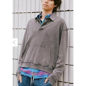 BDG Bonfire Rugby Sweatshirt Gray Collared Pullover Pocket Size Large