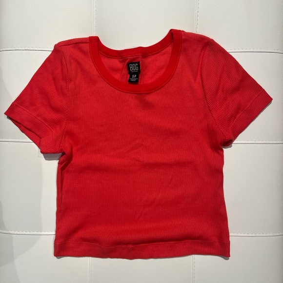 Bold red ribbed top by BDG. Features a classic round neckline.