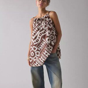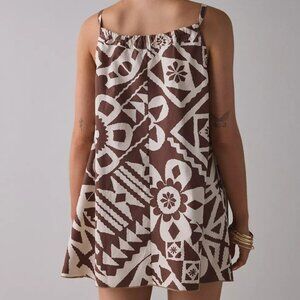 Stylish mini dress with bold geometric patterns. Features a halter neckline. Perfect for casual outings. Wore this once in Hawaii - great for a tropical event or vacation or honeymoon.