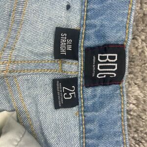 BDG Button Fly Size 25 Slim Straight Distressed Inseam 26