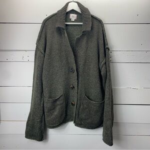 BDG Button Front Cardigan Oversized Chunky Knit in Green/Brown Size Medium