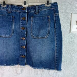 BDG Button Front Mini Medium Wash Blue Denim Skirt Women's Size S