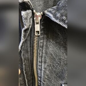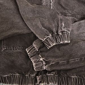 Stylish charcoal denim jacket. Features front pockets and button details. Ideal for casual wear.