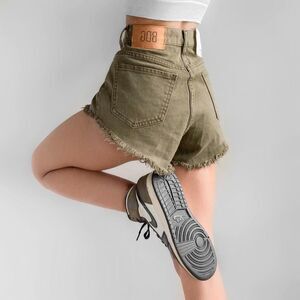 Urban Outfitters - Cheeky Distressed Denim Olive Green Shorts ✨ Next day shipping❣️ Mega cute staple high waisted cheeky short from BDG. Crafted from an olive green denim with a high rise with high cut sides. Zip closure. Finished with distressed hems! Pair to perfection with vintage baby tees! Retails for $59