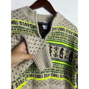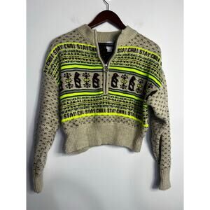 BDG Chill Stay Chill Fair Isle Cropped Sweater Beige/Brown/Neon Half-Zip Knit S