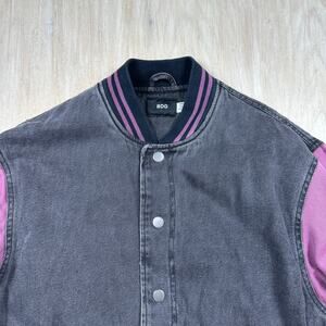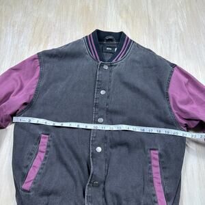 BDG Colorblock Varsity Black & Purple Long Sleeve Snap Front Bomber Jacket Small