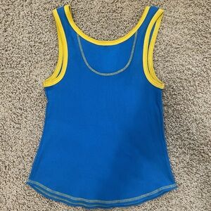 Never been worn!!! Blue tank with yellow outline
