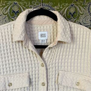 BDG Cream Stanley Waffle Knit Button-Down Shirt Size Extra Small