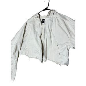 BDG Cropped Raw Hem Cut Off Lightweight Jacket Size M. Good condition there are a couple spots shown in pics. Hooded.