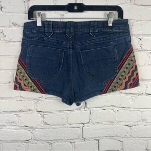 BDG DARK WASH EMBROIDERED MID-RISE BOHO FESTIVAL SHORTS SIZE(29)