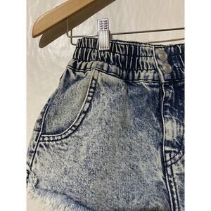 BDG Denim Blue Acid Wash Rise Cheeky Jean Shorts Size 25W Cut Off Button