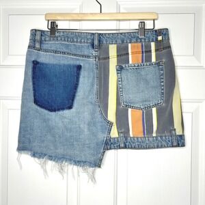 BDG Denim Mini Skirt Asymmetrical Patchwork Striped Floral Size Large