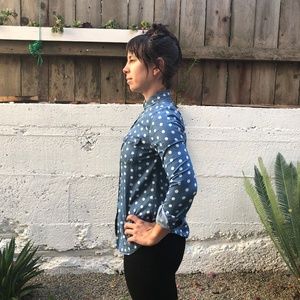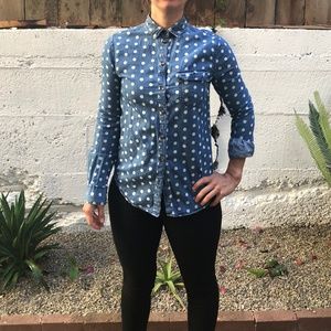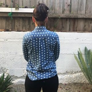 BDG Denim Polka Dot Button Up Long Sleeve Shirt