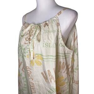 BDG Eva Tie-Front Ruched Strap Trapeze Mini Dress Size Large Hawaiian Print