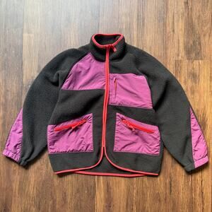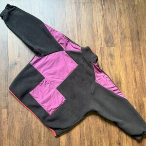 BDG Fleece Jacket Black Purple Red Nylon Trim Zip Front Gorpcore Small