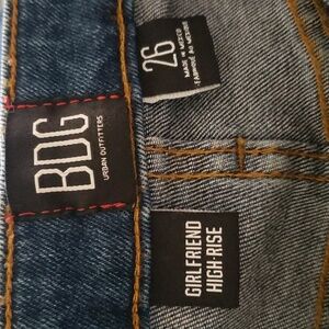 BDG urban outfitters girlfriend high rise jeans. front seam with zippers at the hem. super stretch comfortable jean. waist 14" rise 11" inseam 26"