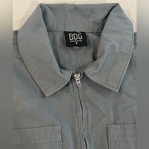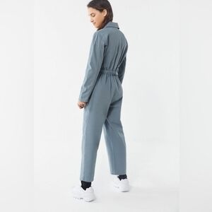 This BDG jumpsuit in a sleek gray hue features a relaxed fit with an elastic waistband for added definition. The full-length pants are designed with tapered legs and ankle cuffs, offering a modern and comfortable silhouette. Perfect for a casual yet polished look.