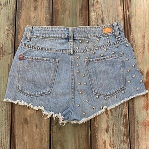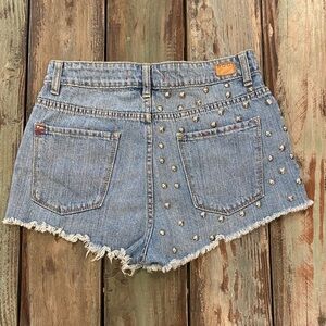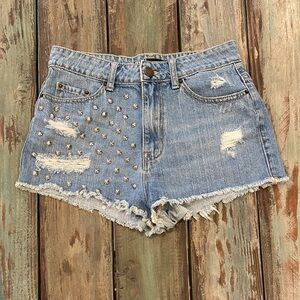 BDG High Rise Cheeky Cutoffs Denim Shorts Distressed With Silver Studs Sz 8 (29)