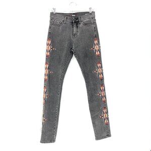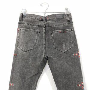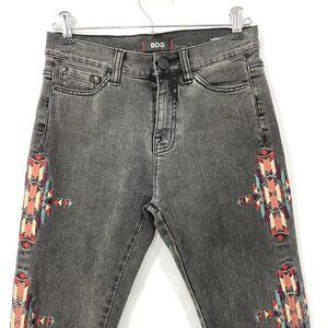 BDG High Rise Cigarette Ankle Denim Jeans Aztec Tribal Embroidered Sz 26W x 30L