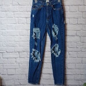BDG High Rise Mom The Straight Jeans Destroyed Ripped Size 25