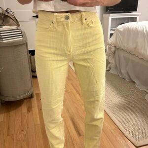 Chic high rise jeans in a vibrant yellow. Perfect for adding a pop of color.