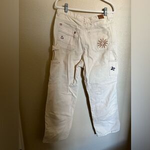 BDG High-Waisted Carpenter Jean Embroidered Ecru Sz 32