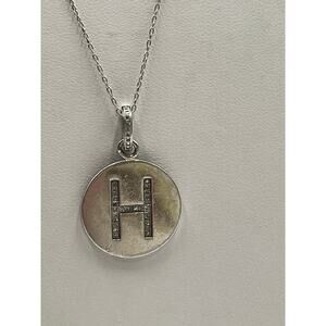 BDG Italy Sterling SIlver 925 Diamond Initial Letter H Pendant Necklace