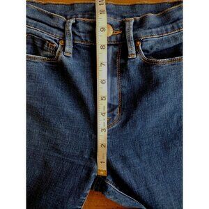Please see photos for a small pull as is typical for jeggings. These BDG Jeans in size 25 feature a high-rise, mid-rise style with a 5-pocket design and a 27-inch inseam. Made of denim fabric with a medium wash, they offer a comfortable fit with stretch and easy care features. The jegging style is accented with a logo and available in a solid blue color, suitable for all seasons. Perfect for women, these jeans from the BDG brand are ideal for a casual, trendy look with a touch of personalization.