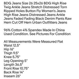 BDG Jeans Size 26 25x26 BDG High Rise Twig Ankle Jeans Stretch Distressed Torn