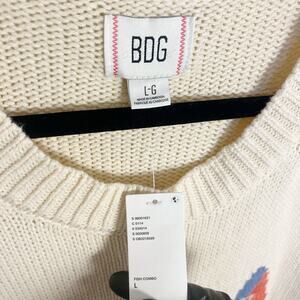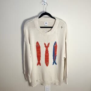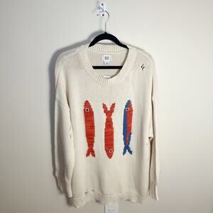 BDG Kurt Fish Graphic Distressed Oversized Fisherman Sweater Size Large New
